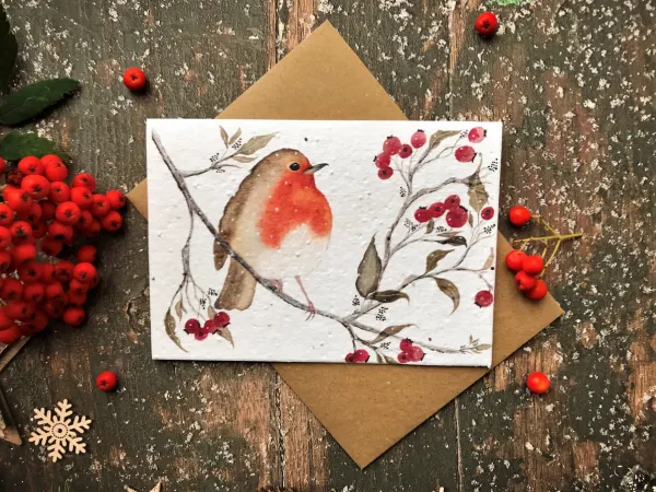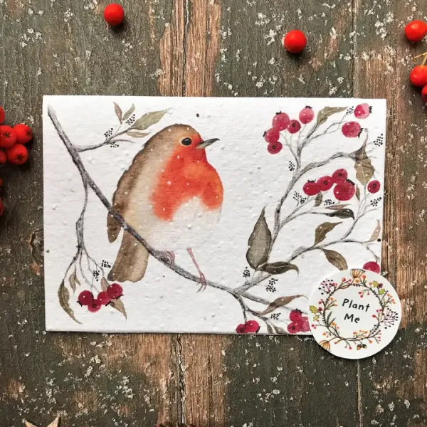 Plantable Seed Christmas Card, Illustrated Card For Christmas, Robin Red Breast