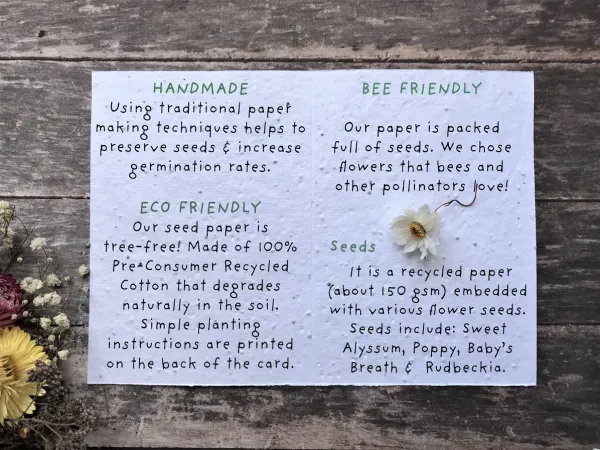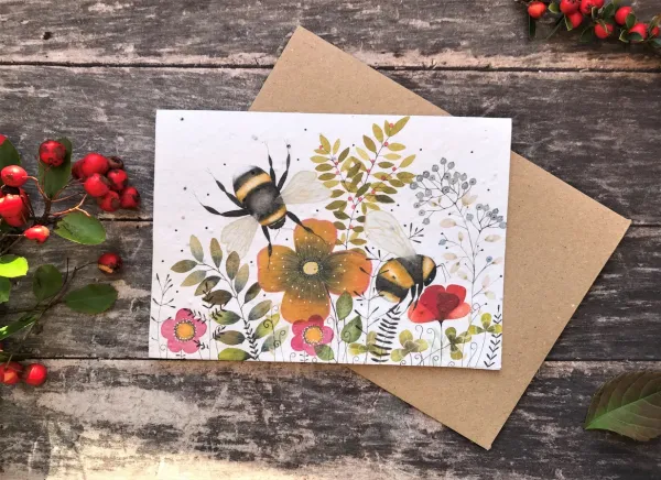 Plantable Seed Greeting Card, Bees on Flowers, Illustrated Birthday & Occasion Card, Blank Inside