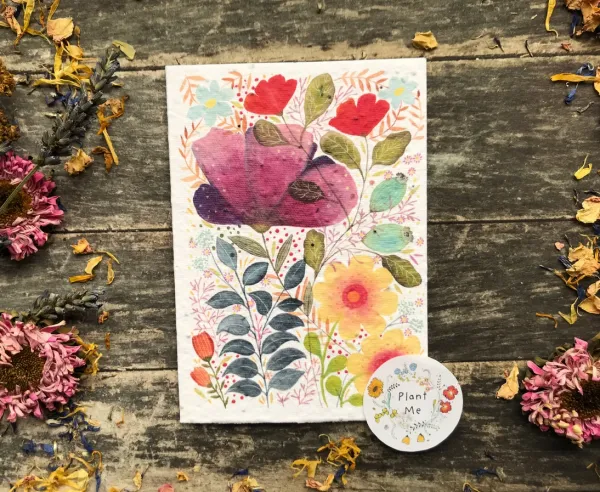 Plantable Seed Greeting Card, Illustrated Card For Birthdays, Occasions, Floral