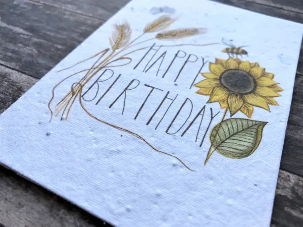 Plantable Seed Greeting Card, Occasionas & Birthday, Sunflower & Bee, Blank Inside